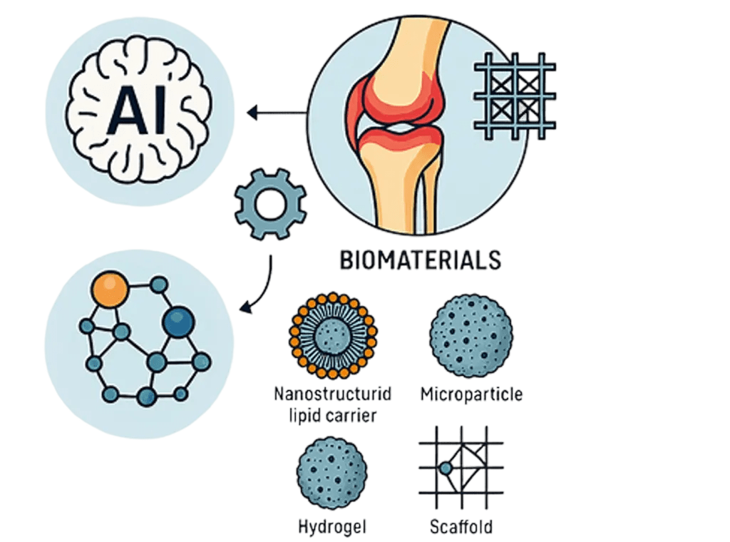 By combining biomaterials, regenerative medicine, and artificial intelligence, we aim to create precision-engineered DDS capable of sustained drug release and enhanced therapeutic efficacy. These systems include nanostructured lipid carriers, microparticles, scaffolds and hydrogels, designed to deliver anti-inflammatory and regenerative agents directly to affected joints.